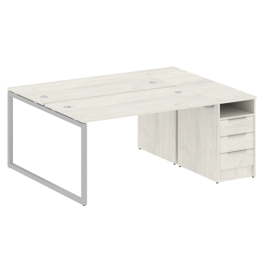 Столешницы имеют отверстия с пластиковыми заглушками кабель-канала серого цвета.