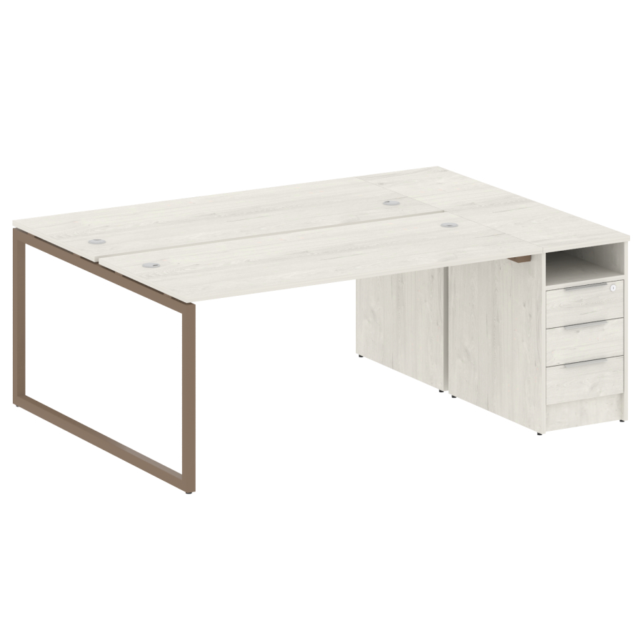 Столешницы имеют отверстия с пластиковыми заглушками кабель-канала серого цвета.