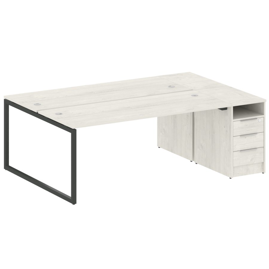 Столешницы имеют отверстия с пластиковыми заглушками кабель-канала серого цвета.