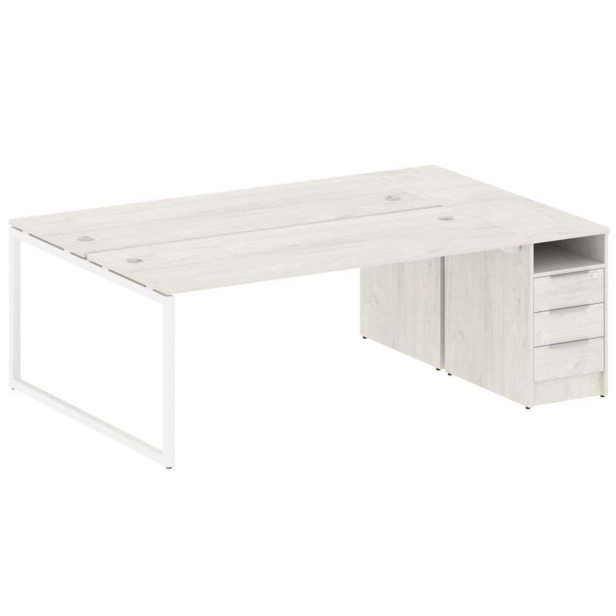 Столешницы имеют отверстия с пластиковыми заглушками кабель-канала серого цвета.