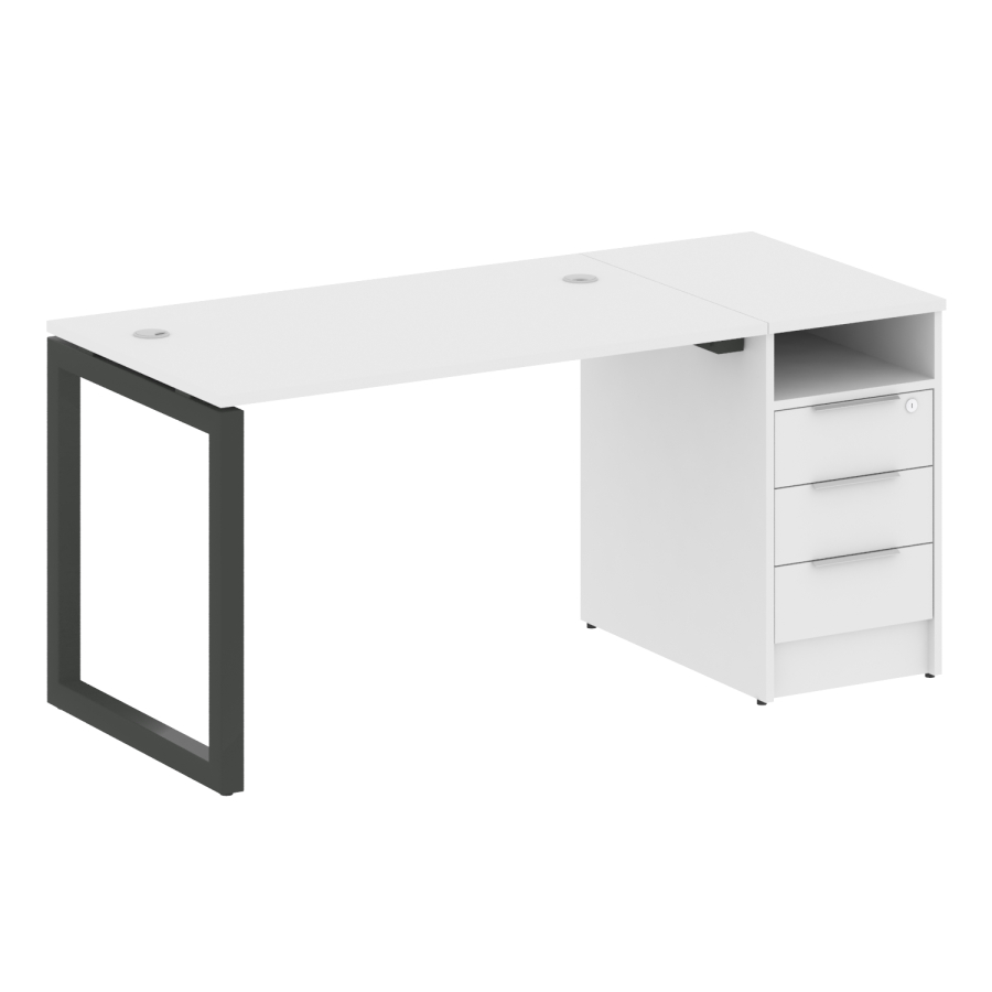 Metal System Quattro Р. ст. с тумбой на О-образном м/к 50БО.РС-СТП-1.2 Белый/Антрацит металл 1612*720*750