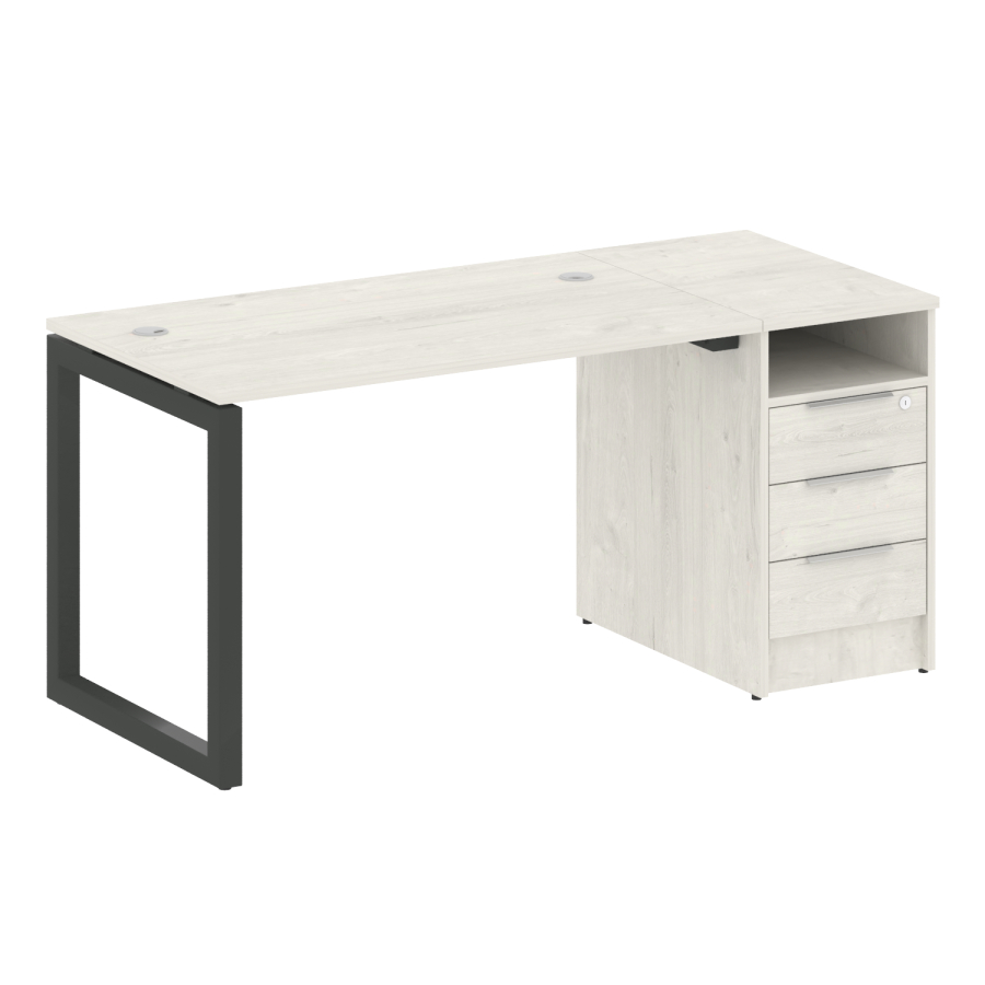 Столешницы имеют отверстия с пластиковыми заглушками кабель-канала серого цвета.