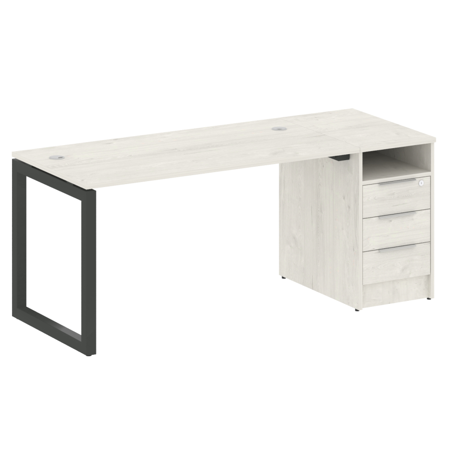 Столешницы имеют отверстия с пластиковыми заглушками кабель-канала серого цвета.