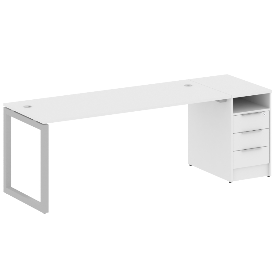 Metal System Quattro Р. ст. с тумбой на О-образном м/к 50БО.РС-СТП-1.5 Белый/Серый металл 2212*720*750