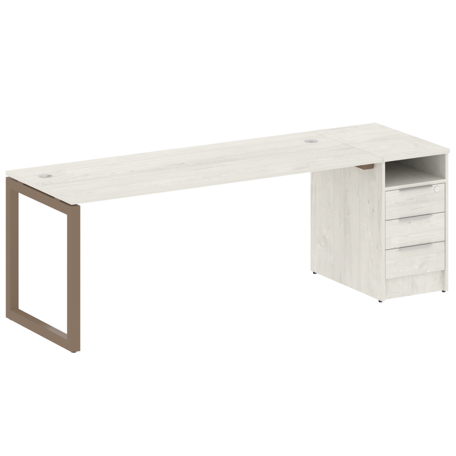 Столешницы имеют отверстия с пластиковыми заглушками кабель-канала серого цвета.