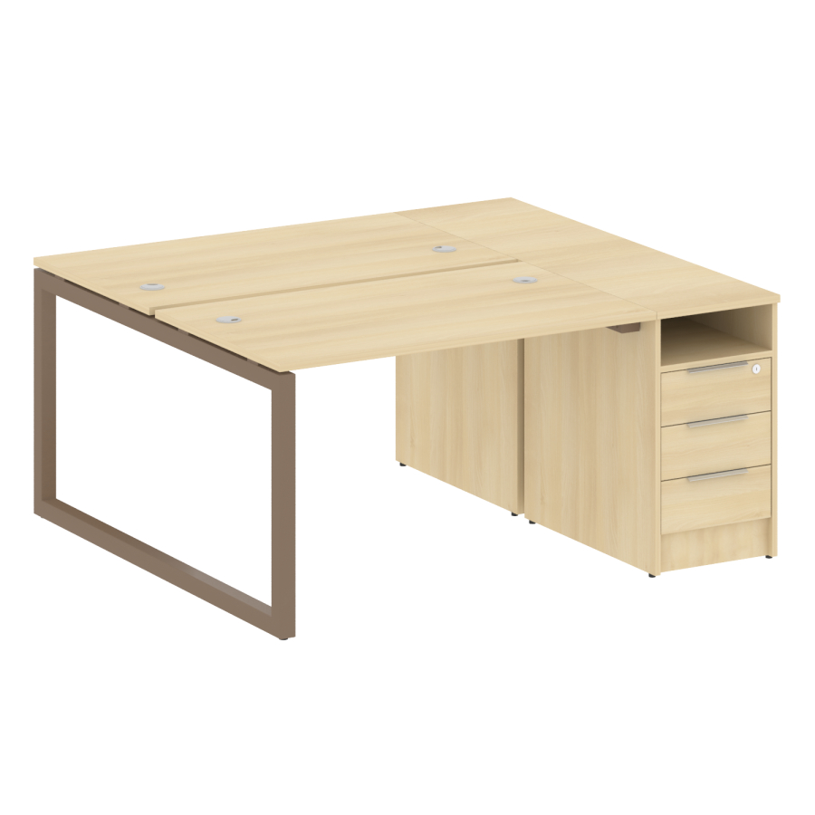 Столешницы имеют отверстия с пластиковыми заглушками кабель-канала серого цвета.