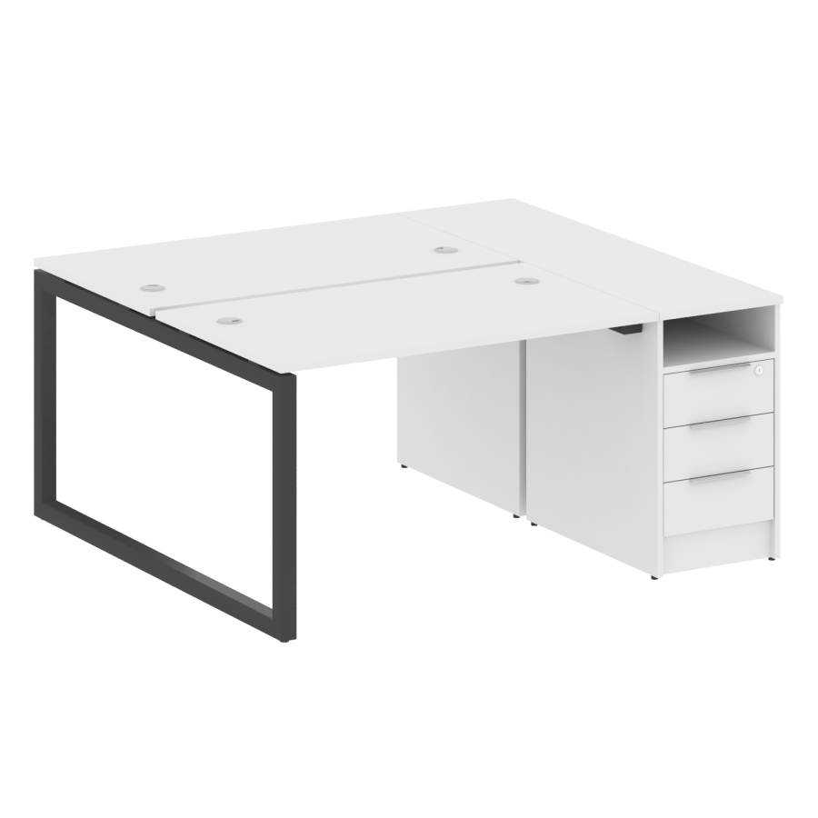 Столешницы имеют отверстия с пластиковыми заглушками кабель-канала серого цвета.
