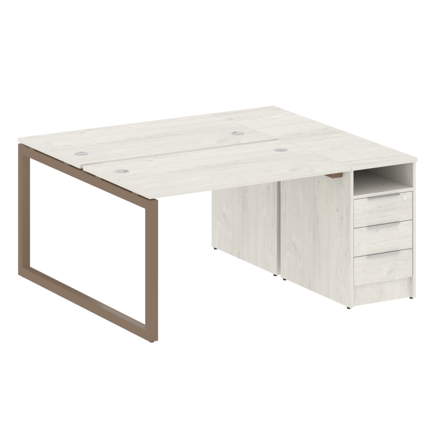 Столешницы имеют отверстия с пластиковыми заглушками кабель-канала серого цвета.