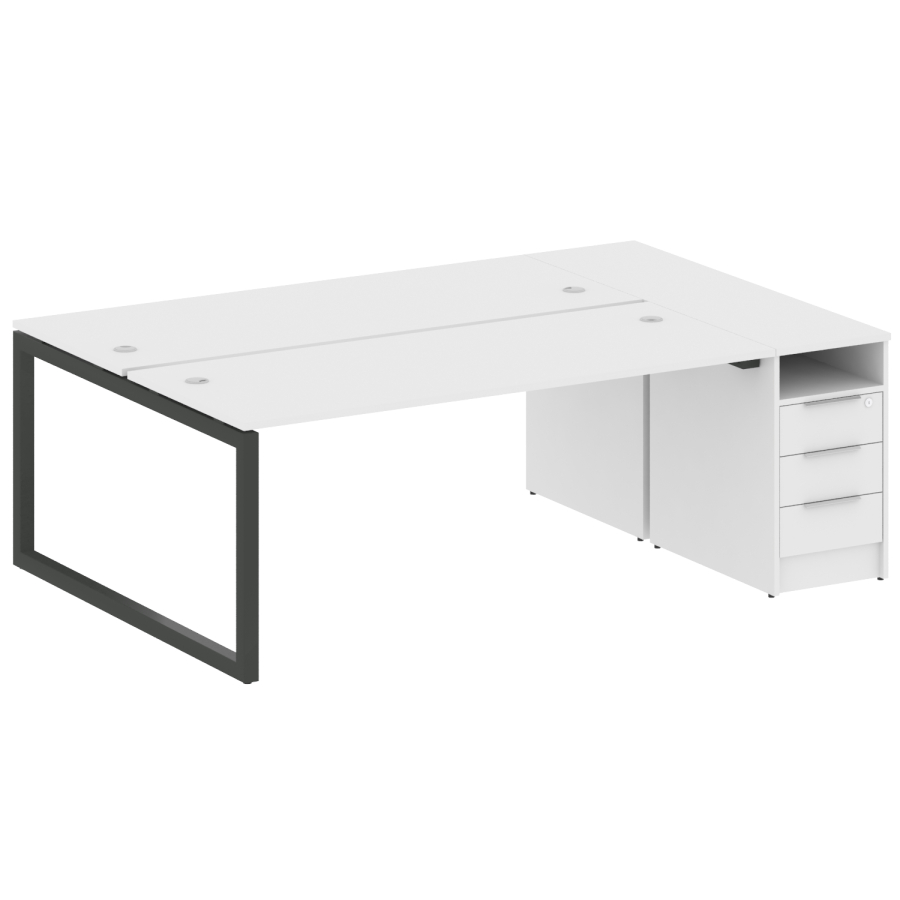 Столешницы имеют отверстия с пластиковыми заглушками кабель-канала серого цвета.