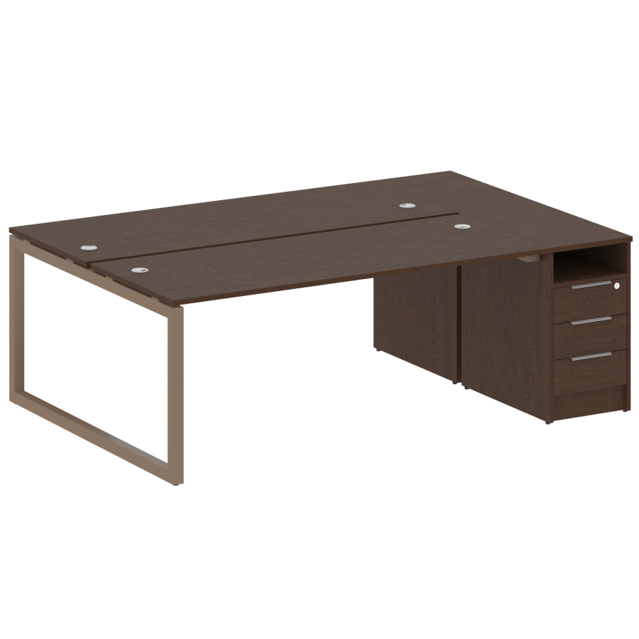Столешницы имеют отверстия с пластиковыми заглушками кабель-канала серого цвета.