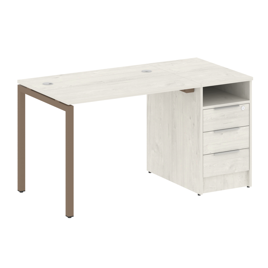 Столешницы имеют отверстия с пластиковыми заглушками кабель-канала серого цвета.