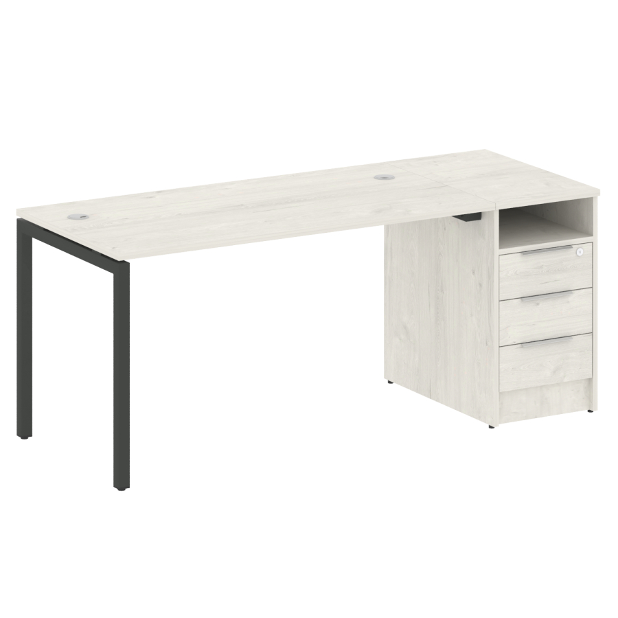 Столешницы имеют отверстия с пластиковыми заглушками кабель-канала серого цвета.