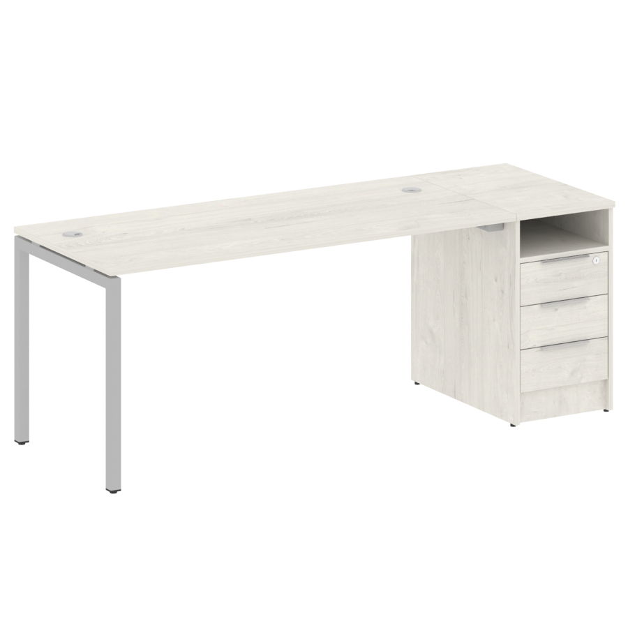 Столешницы имеют отверстия с пластиковыми заглушками кабель-канала серого цвета.