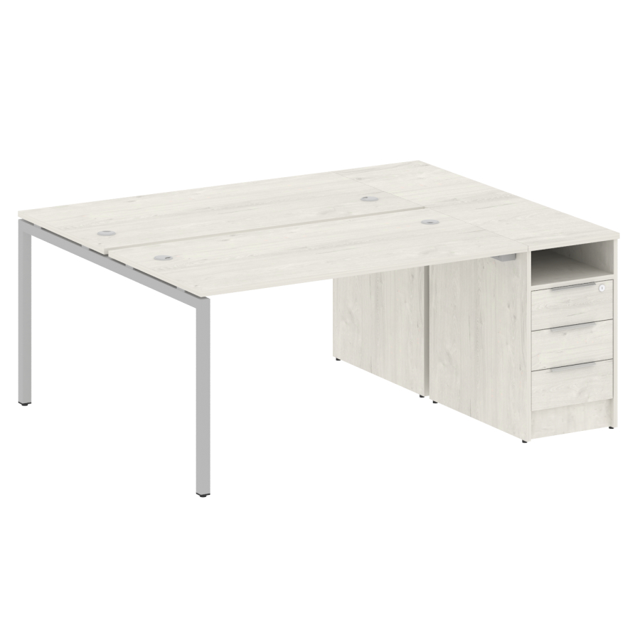 Столешницы имеют отверстия с пластиковыми заглушками кабель-канала серого цвета.