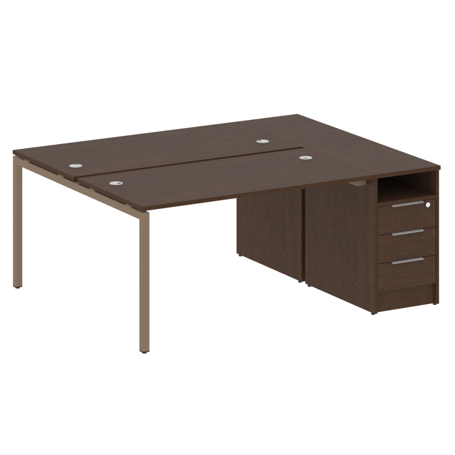 Столешницы имеют отверстия с пластиковыми заглушками кабель-канала серого цвета.