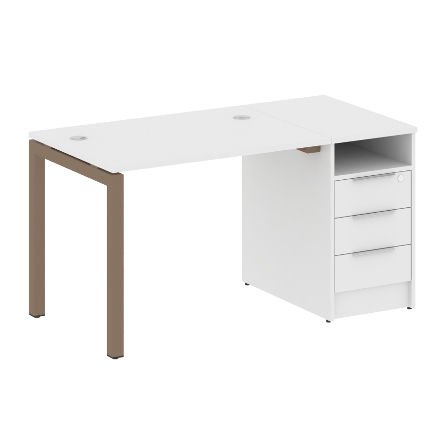 Metal System Quattro Р. ст. с тумбой на П-образном м/к 50БП.РС-СТП-1.1 Белый/Мокко металл 1412*720*750