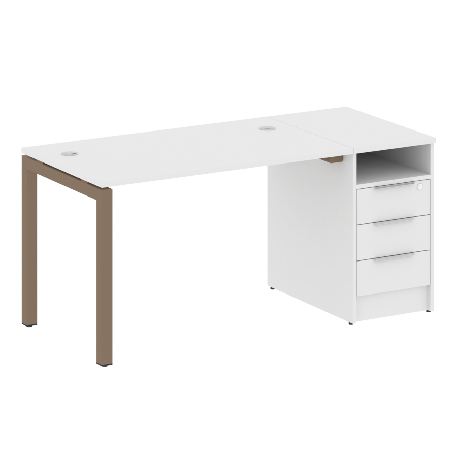 Metal System Quattro Р. ст. с тумбой на П-образном м/к 50БП.РС-СТП-1.2 Белый/Мокко металл 1612*720*750