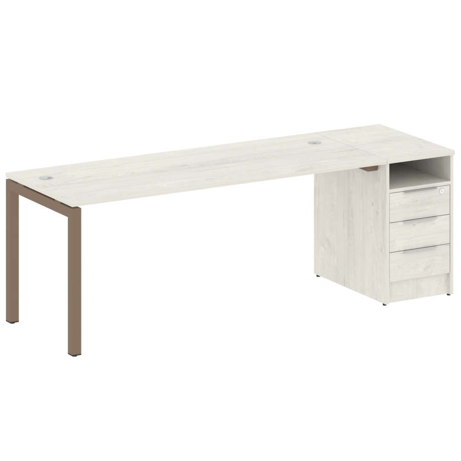 Столешницы имеют отверстия с пластиковыми заглушками кабель-канала серого цвета.