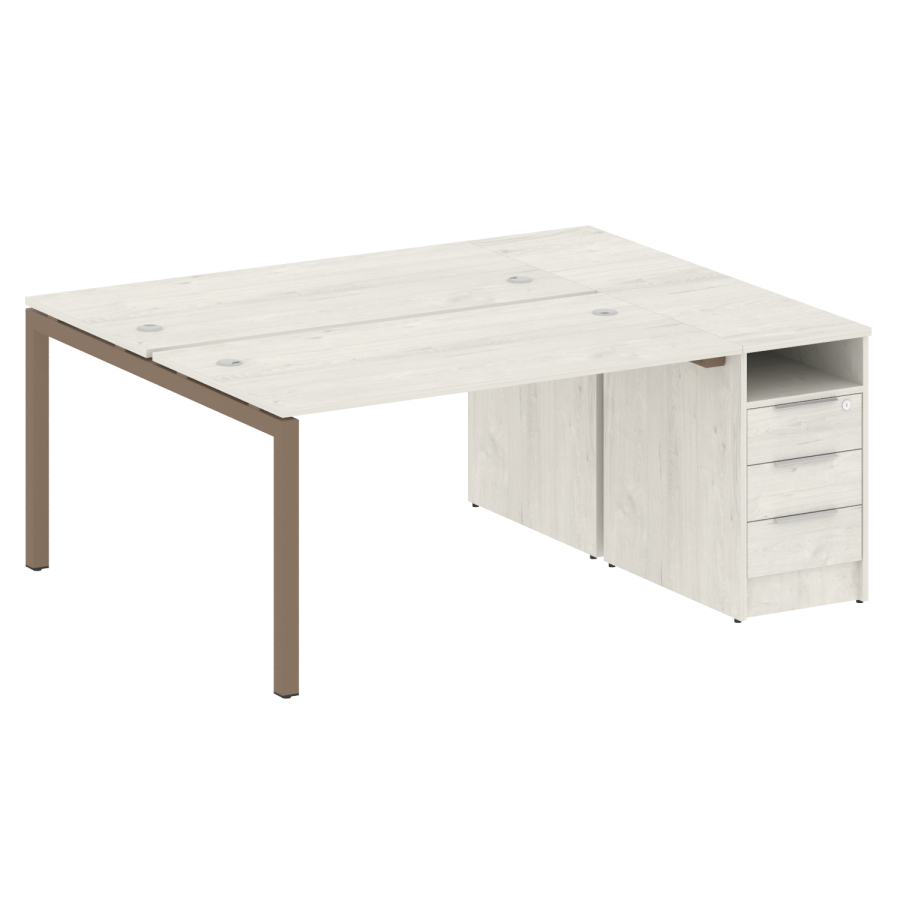 Столешницы имеют отверстия с пластиковыми заглушками кабель-канала серого цвета.