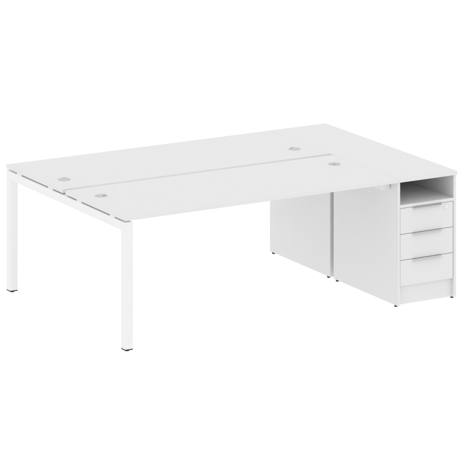 Столешницы имеют отверстия с пластиковыми заглушками кабель-канала серого цвета.