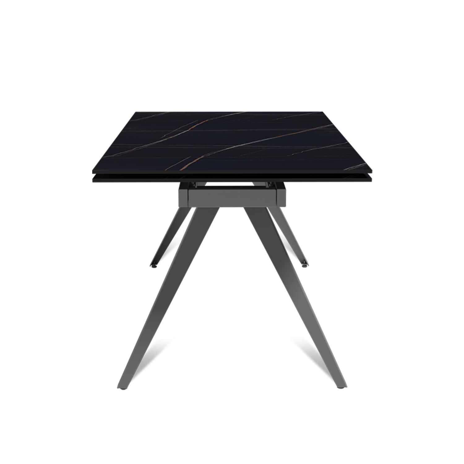 Стол с керамической столешницей «Asti» представляет собой стильное и практичное решение для кухни или столовой. Поверхность столешницы, выполненная из керамики, обеспечивает прочность, легкость в уходе и устойчивость к царапинам и температурным изменениям. Стильное металлическое основание дарит стабильность и надежность, дополняя современный дизайн стола. Данный стол идеально подходит для семейных обедов и встреч с друзьями, создавая уютную и стильную обстановку в вашем доме. Столешница модели «Asti» может быть как компактной по площади так и просторной благодаря наличию механизма трансформации.