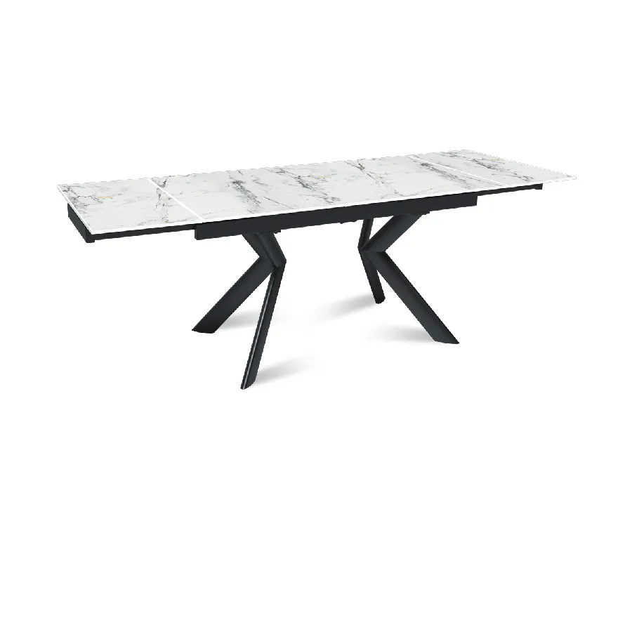 Стол с керамической столешницей «Bridge» представляет собой изысканное и функциональное обеденное место для вашего дома. Поверхность столешницы, выполненная из керамики, обеспечивает прочность, легкость в уходе и устойчивость к царапинам и температурным изменениям. Стильное металлическое основание дарит стабильность и надежность, дополняя современный дизайн стола. Данный стол идеально подходит для семейных обедов и встреч с друзьями, создавая уютную и стильную обстановку в вашем доме. Столешница модели «Bridge» может быть как компактной по площади так и просторной благодаря наличию механизма трансформации.