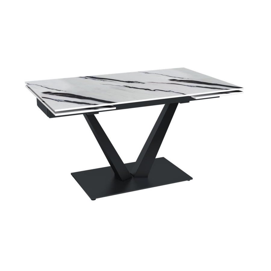 Стол с керамической столешницей «Malibu» представляет собой изысканное и функциональное обеденное место для вашего дома. Поверхность столешницы, выполненная из керамики, обеспечивает прочность, легкость в уходе и устойчивость к царапинам и температурным изменениям. Стильное металлическое основание дарит стабильность и надежность, дополняя современный дизайн стола. Данный стол идеально подходит для семейных обедов и встреч с друзьями, создавая уютную и стильную обстановку в вашем доме. Столешница модели «Malibu» может быть как компактной по площади так и просторной благодаря наличию механизма трансформации.