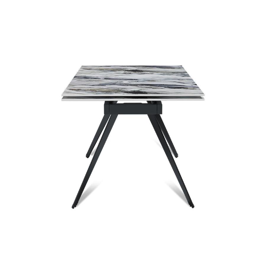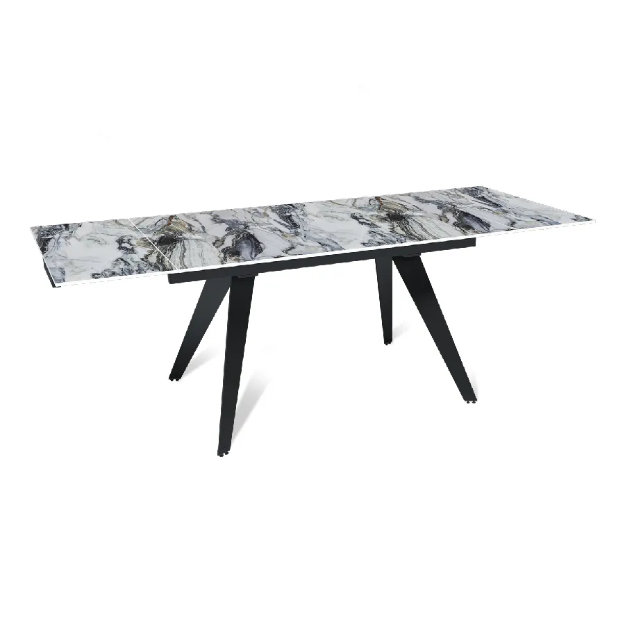 Стол с керамической столешницей «Rhein» представляет собой стильное и практичное решение для кухни или столовой. Поверхность столешницы, выполненная из керамики, обеспечивает прочность, легкость в уходе и устойчивость к царапинам и температурным изменениям. Стильное металлическое основание дарит стабильность и надежность, дополняя современный дизайн стола. Данный стол идеально подходит для семейных обедов и встреч с друзьями, создавая уютную и стильную обстановку в вашем доме. Столешница модели «Rhein» может быть как компактной по площади так и просторной благодаря наличию механизма трансформации.