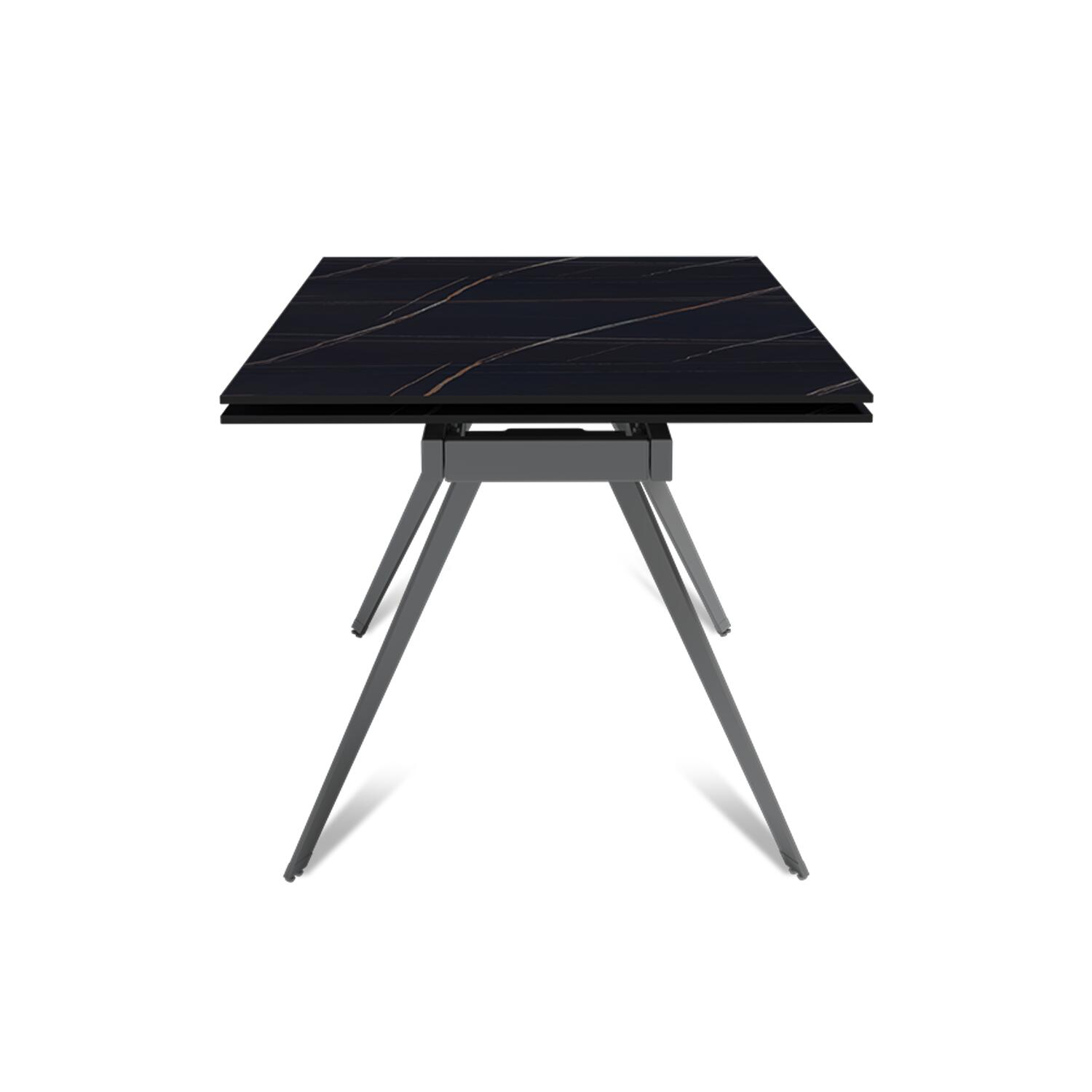 Стол с керамической столешницей «Rhein» представляет собой стильное и практичное решение для кухни или столовой. Поверхность столешницы, выполненная из керамики, обеспечивает прочность, легкость в уходе и устойчивость к царапинам и температурным изменениям. Стильное металлическое основание дарит стабильность и надежность, дополняя современный дизайн стола. Данный стол идеально подходит для семейных обедов и встреч с друзьями, создавая уютную и стильную обстановку в вашем доме. Столешница модели «Rhein» может быть как компактной по площади так и просторной благодаря наличию механизма трансформации.
