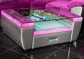 Стекло применяется в мебельном производстве в качестве конструкционного материала для изготовления столешниц, фасадов, полок; используют только прочное закаленное стекло.