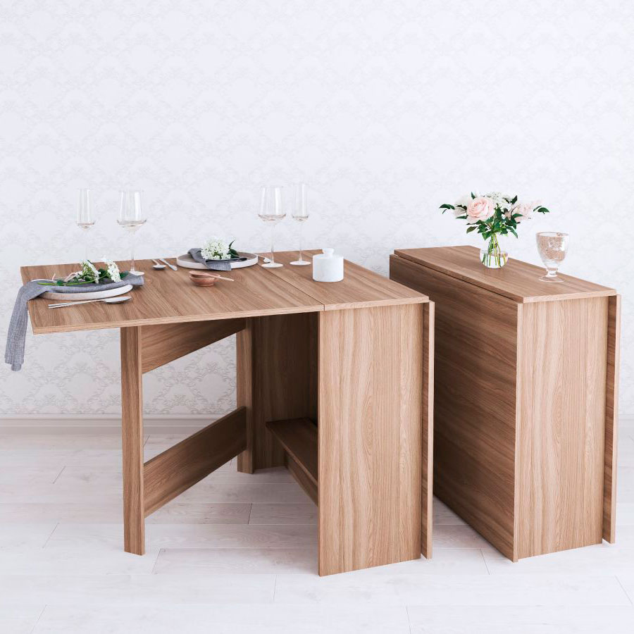 Стол имеет 3 положения: полностью сложенный, разложенный наполовину или полностью разложенный