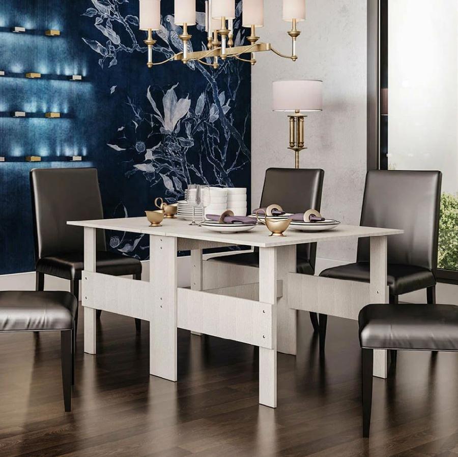 При необходимости столешница компактной модели раскладывается на две стороны и превращается в полноценный обеденный стол, за которым поместится немало гостей.