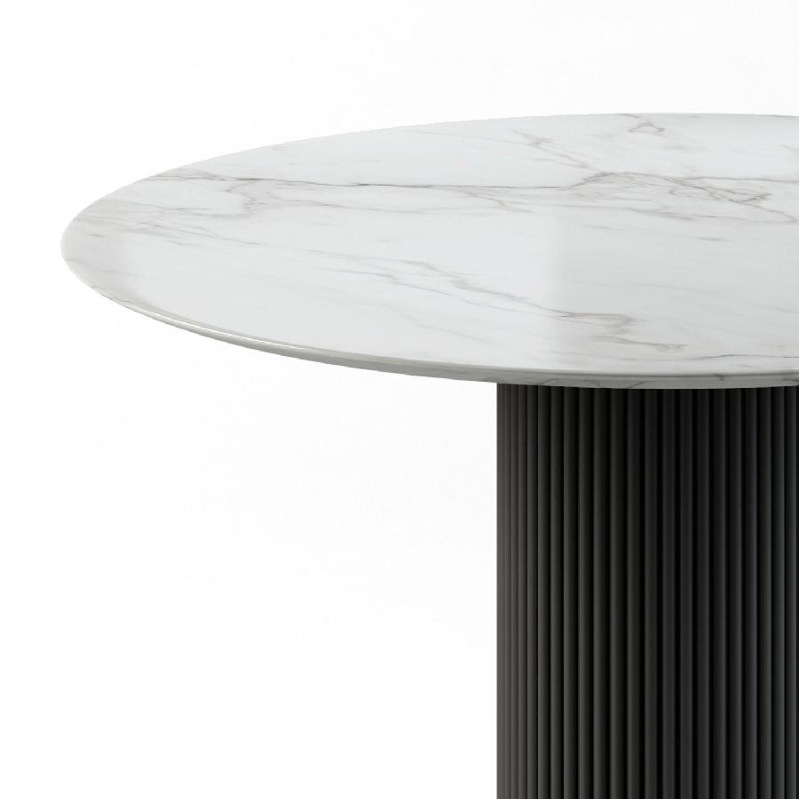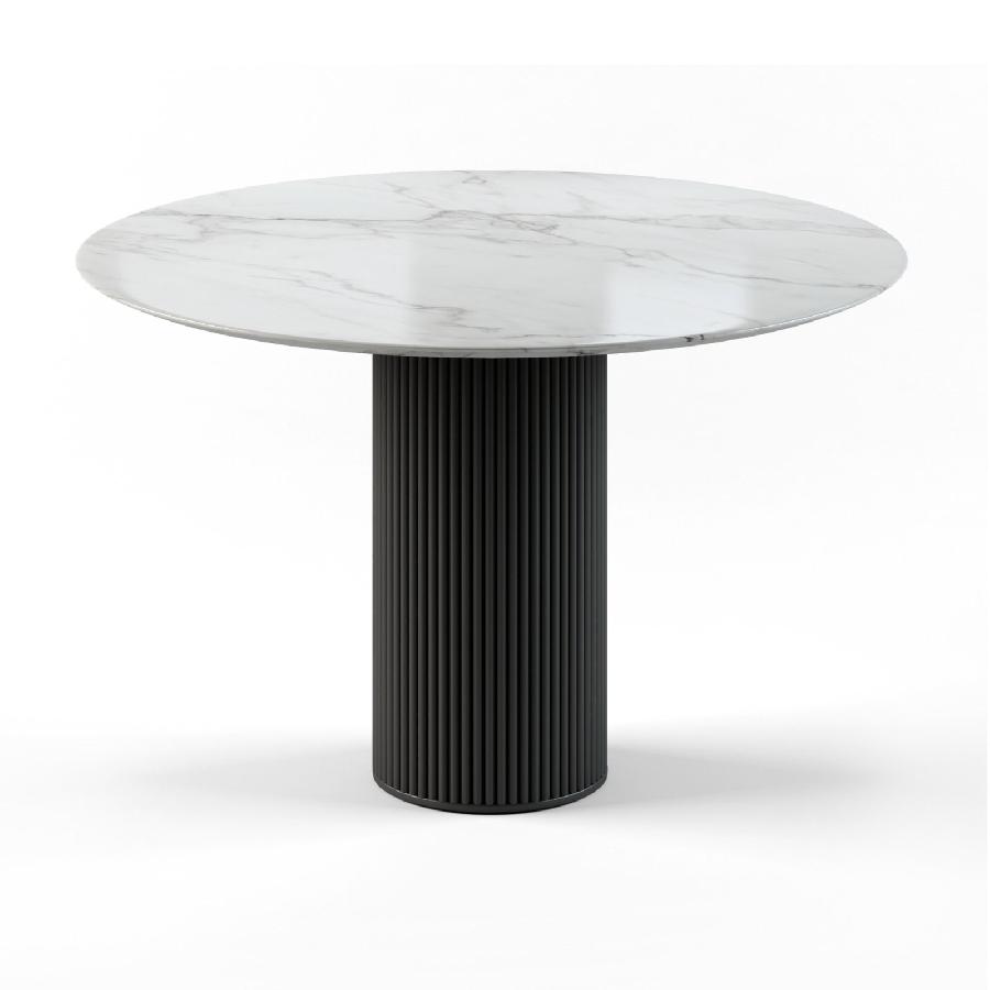 Стол "Nolan" — стильная и изысканная модель с круглой столешницей из керамики, основанием из металла.
