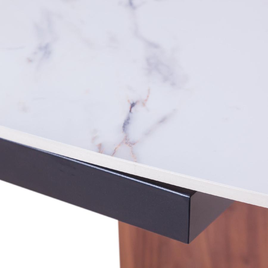 Столешница выполнена из высококачественной керамики, которая устойчива к царапинам и легко очищается от загрязнений. Керамика придаёт изделию современный вид и долговечность.