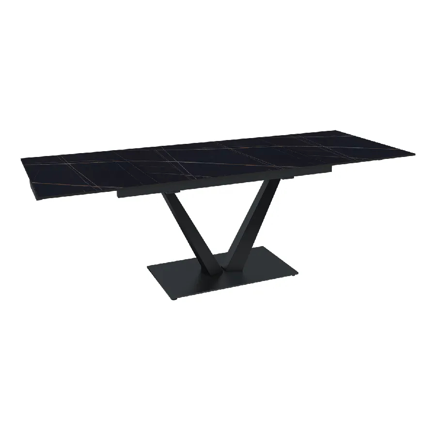 Стол с керамической столешницей «Malibu» представляет собой изысканное и функциональное обеденное место для вашего дома. Поверхность столешницы, выполненная из керамики, обеспечивает прочность, легкость в уходе и устойчивость к царапинам и температурным изменениям. Стильное металлическое основание дарит стабильность и надежность, дополняя современный дизайн стола. Данный стол идеально подходит для семейных обедов и встреч с друзьями, создавая уютную и стильную обстановку в вашем доме. Столешница модели «Malibu» может быть как компактной по площади так и просторной благодаря наличию механизма трансформации.