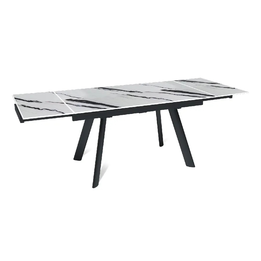 Стол «Stone» оснащен двусторонним механизмом собственного производства, который обеспечивает плавное и бесшумное выдвижение торцевых вставок по направляющим. Механизм позволяет плавно и бесшумно увеличить длину стола с 140 см до 180 или 220 см, выдвигая одну или обе боковые вставки (по 40 см каждая).