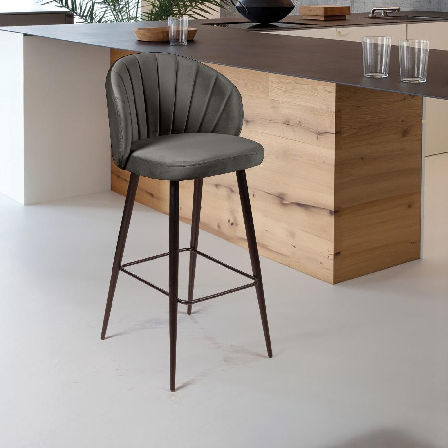 Стул барный Mont Blanc, бархат антрацит 14 / черный конус