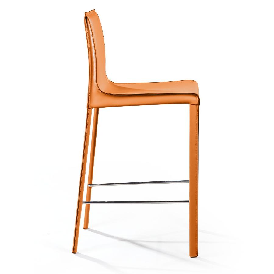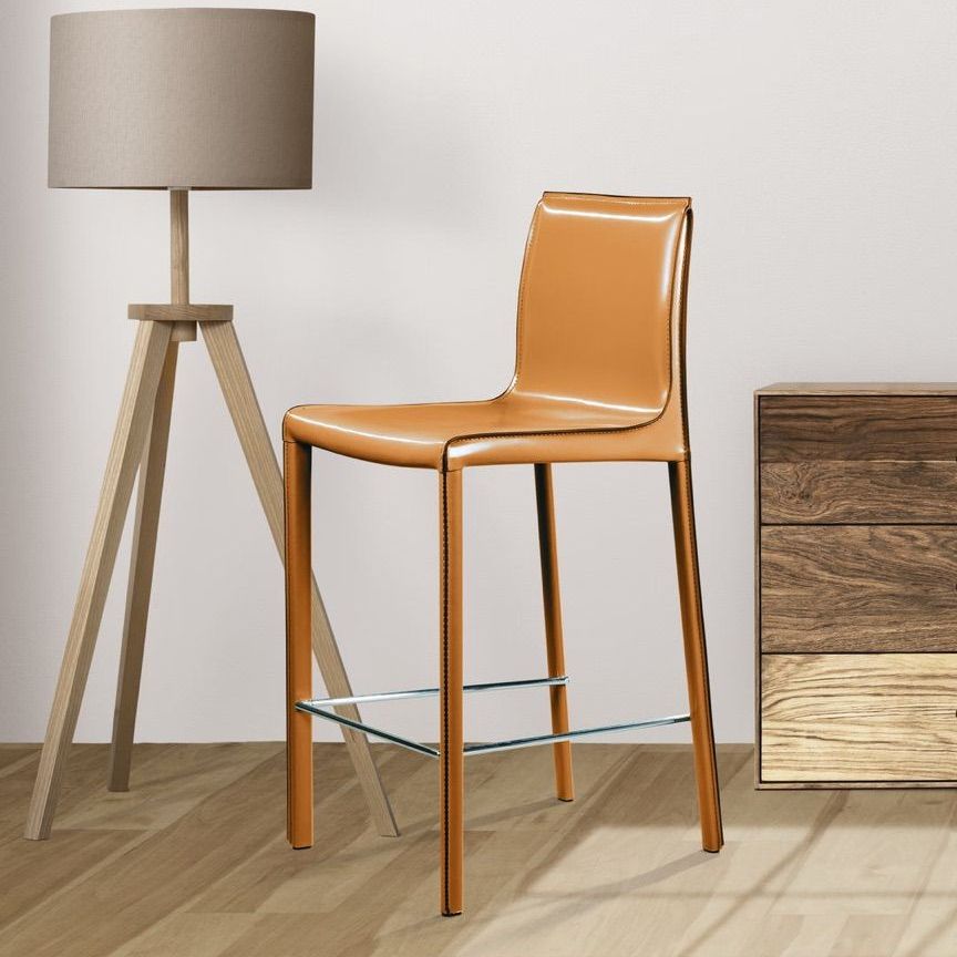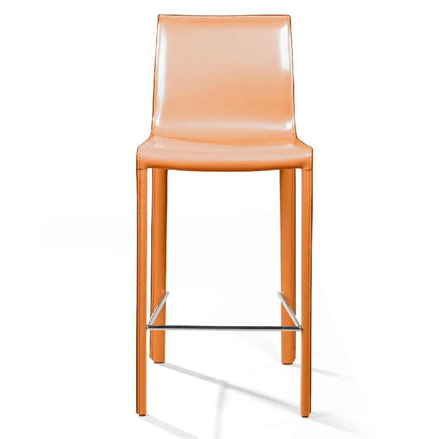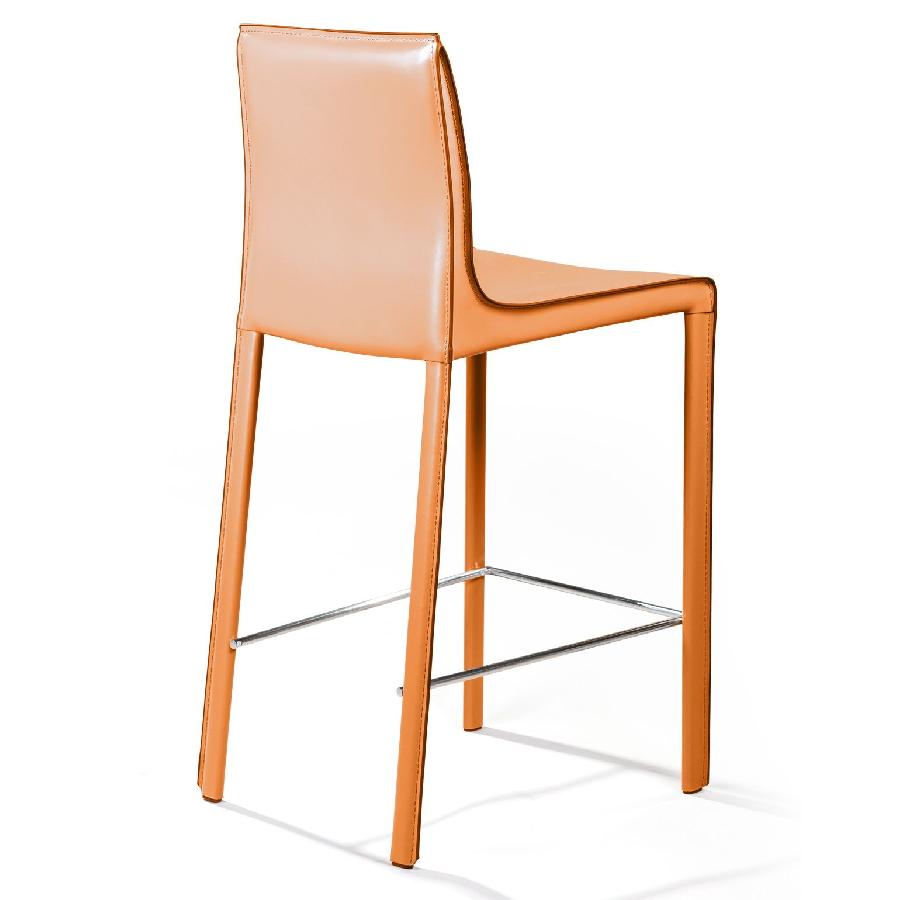 Крепкие металлические ножки скрыты под натуральной кожей такого же цвета, как и сам стул, благодаря этому создается лаконичный образ единого целого. На ножках предусмотрены хромированная подставка для ног и специальные пластиковые накладки, которые придают полубарному стулу дополнительную устойчивость и защищают полот царапин.