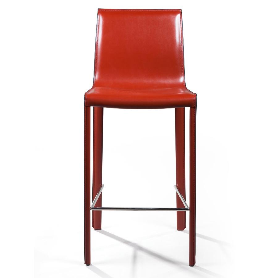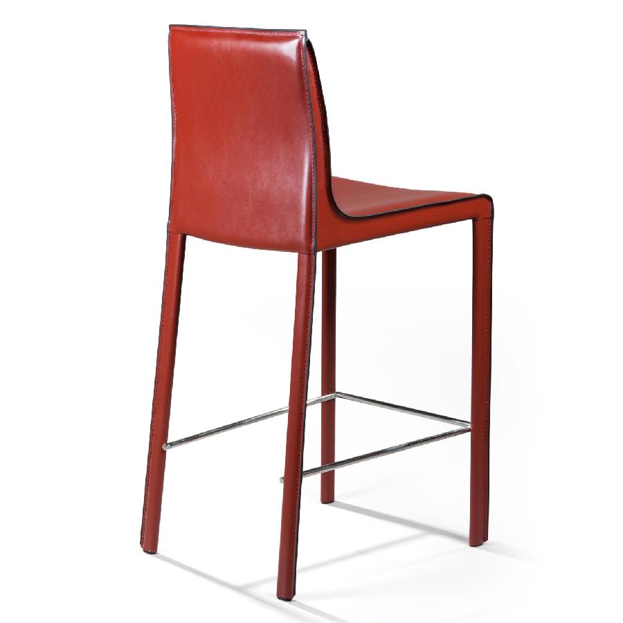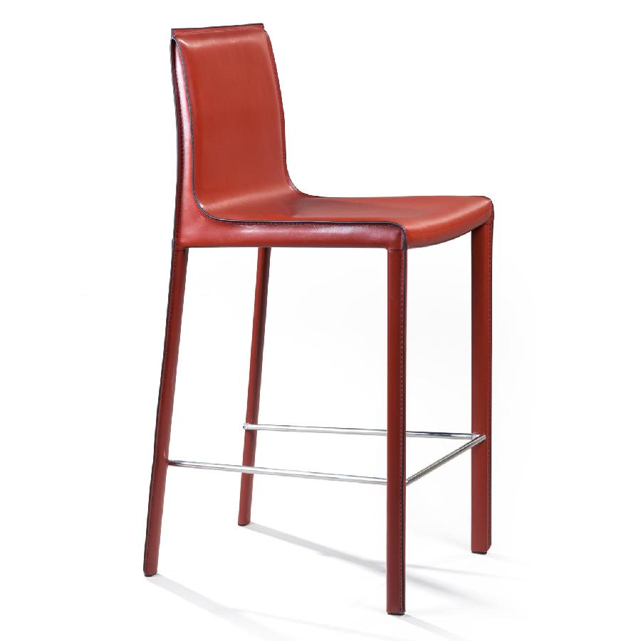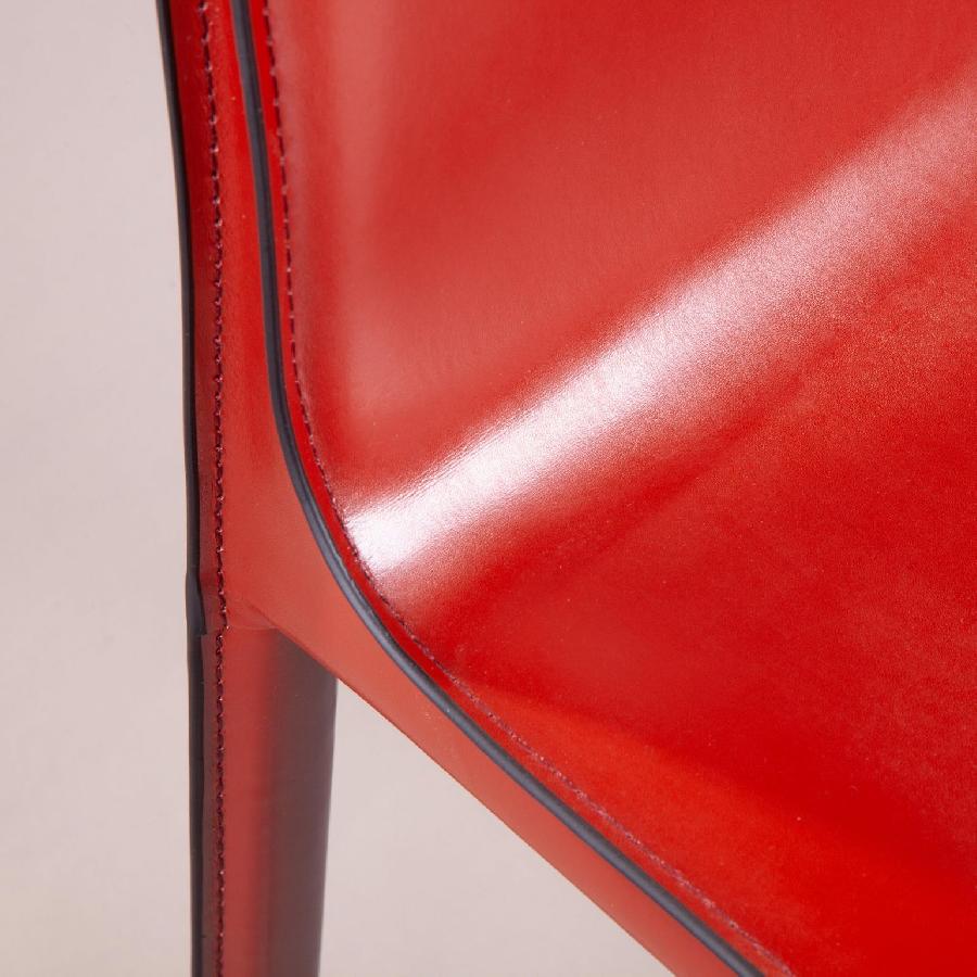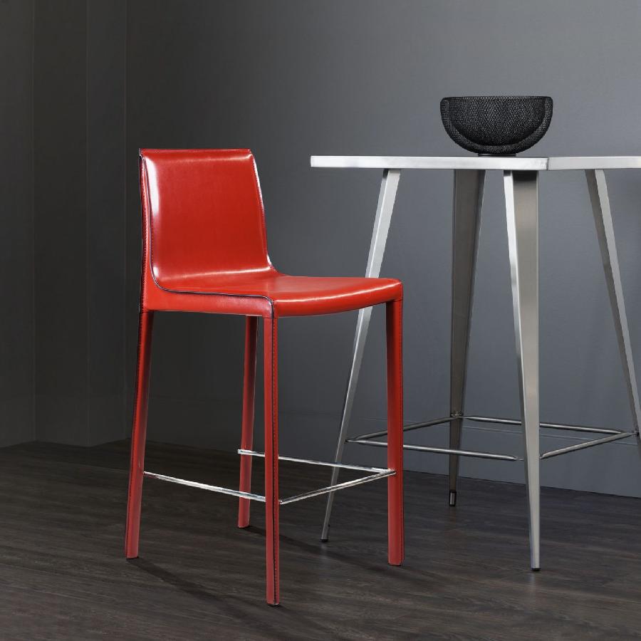 Крепкие металлические ножки скрыты под натуральной кожей такого же цвета, как и сам стул, благодаря этому создается лаконичный образ единого целого. На ножках предусмотрены хромированная подставка для ног и специальные пластиковые накладки, которые придают полубарному стулу дополнительную устойчивость и защищают полот царапин.