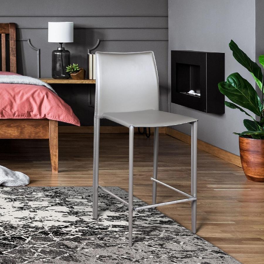Металлические ножки как продолжение спинки и сиденья обтянуты кожей такого же цвета.