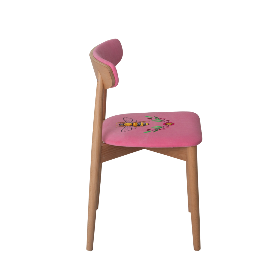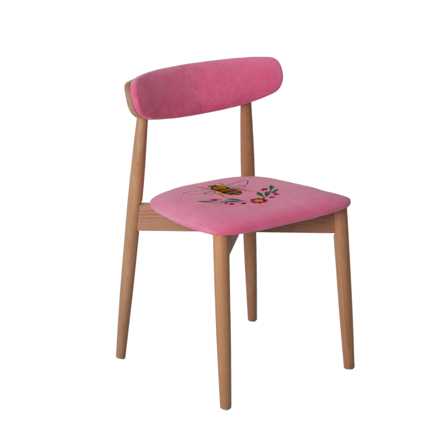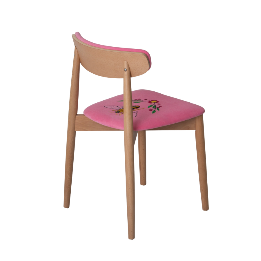 Стул Роквелл, вышивка Оса, велюр TEDDY 833, ножки бук, лак