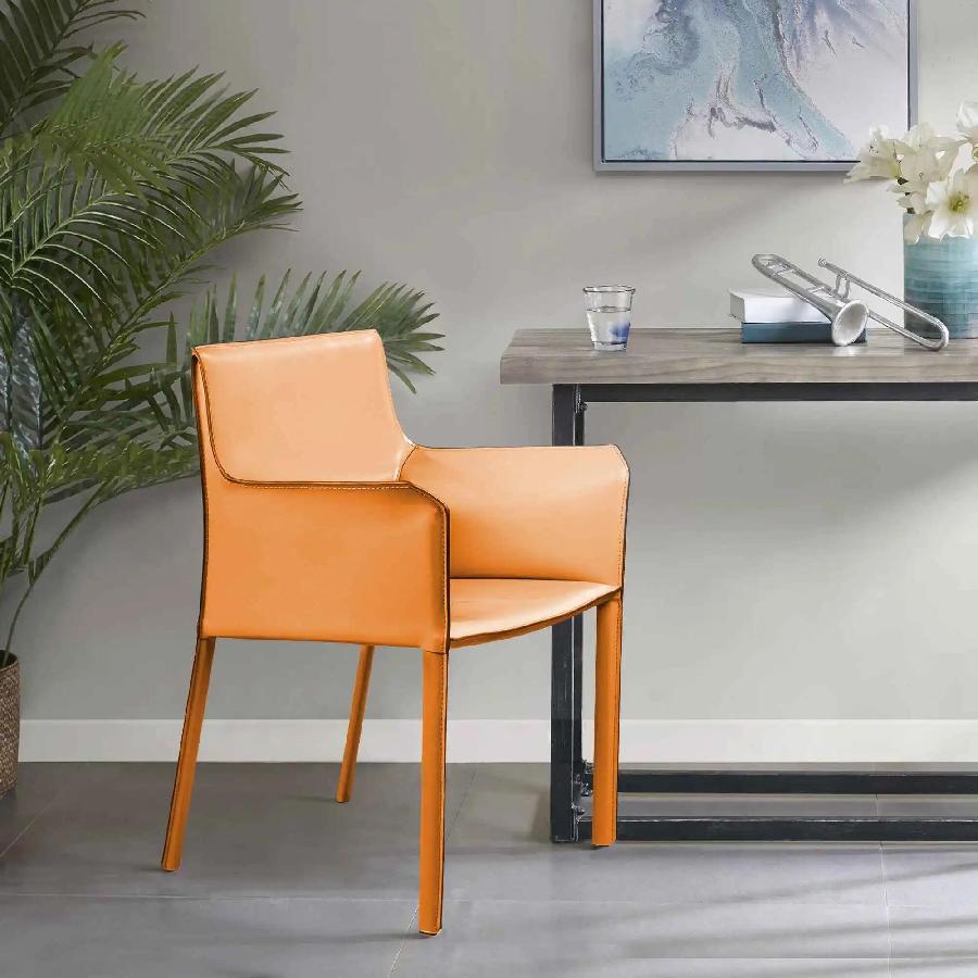 Кожаный стул Barrie всегда будет выгодно смотреться в интерьере, подчеркивая вкус и статус владельца.Модель отличается привлекательным внешним видом и практичностью. Стиль, в котором он выполнен, можно охарактеризовать как мягкая геометрия! Прямоугольное сиденье, высокая спинка с небольшим уклоном назад делают стул невероятно удобным. Высокие подлокотники в дизайне стула как дополнительная опция для еще большего комфорта. Главная особенность модели – плавный переход спинки в сиденье, образующий мягкий изгиб. Ножки обеденного стула, также обтянутые кожей, создают единый образ и являются визуальным продолжением сиденья.