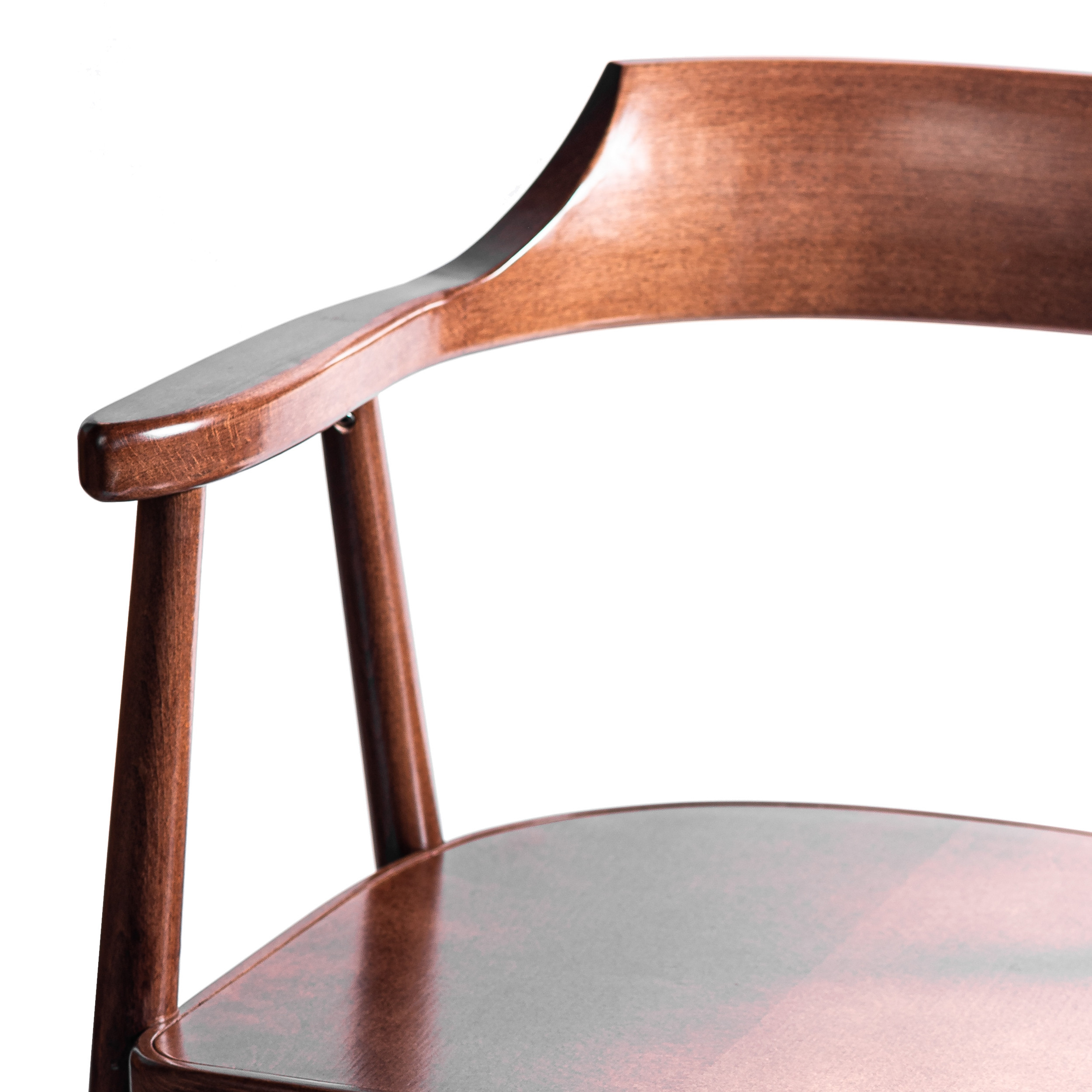Стул с подлокотниками изготовлен из массива бука. Стильный стул впишется практически в любой интерьер, а качественное покрытие и прочный деревянный каркас обеспечивают долговечность.
