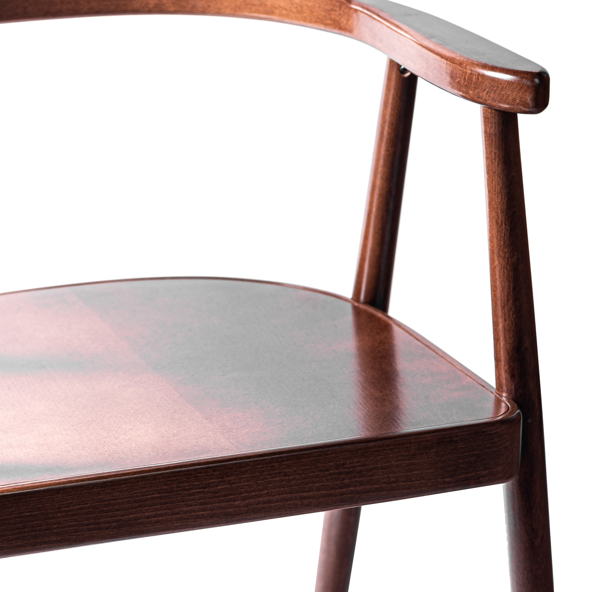 Стул с подлокотниками изготовлен из массива бука. Стильный стул впишется практически в любой интерьер, а качественное покрытие и прочный деревянный каркас обеспечивают долговечность.
