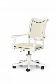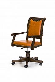 Кресло отличает наличие множества декоративных элементов ручной работы на передних ножках, царговом поясе и спинке, локотниках, что придает стулу элегантность и изысканность.