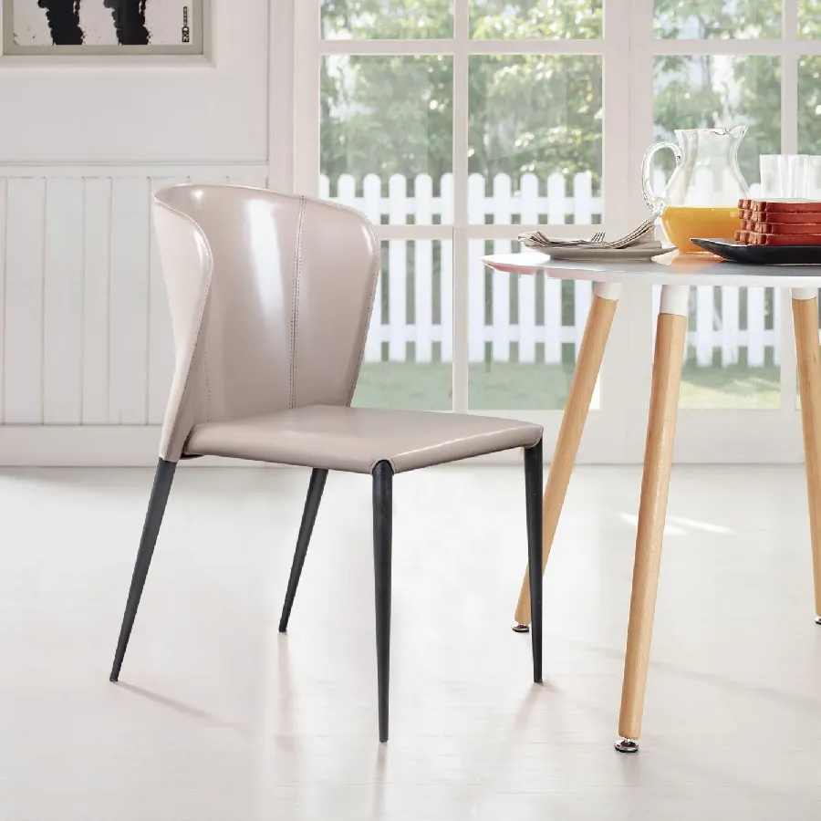 Изюминка стула Albert – невероятно тонкие металлические ножки черного матового цвета, излишне скошенные назад, как часть дизайнерской задумки. На ножках предусмотрены специальные пластиковые накладки, которые придают стулу дополнительную устойчивость и защищают пол от царапин.