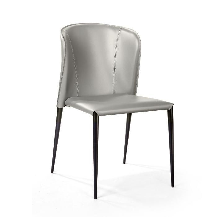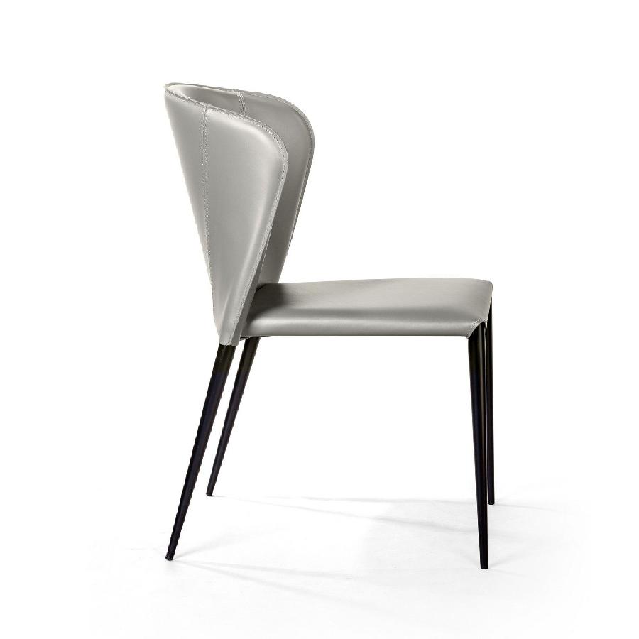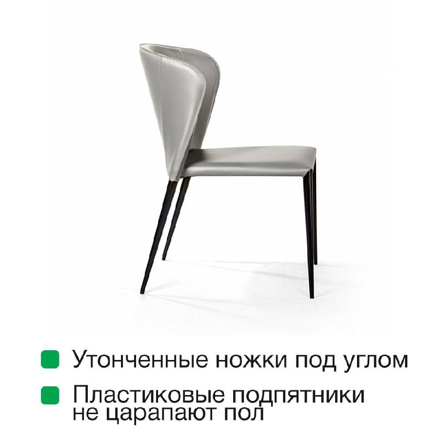 Изюминка стула Albert – невероятно тонкие металлические ножки черного матового цвета, излишне скошенные назад, как часть дизайнерской задумки. На ножках предусмотрены специальные пластиковые накладки, которые придают стулу дополнительную устойчивость и защищают пол от царапин.