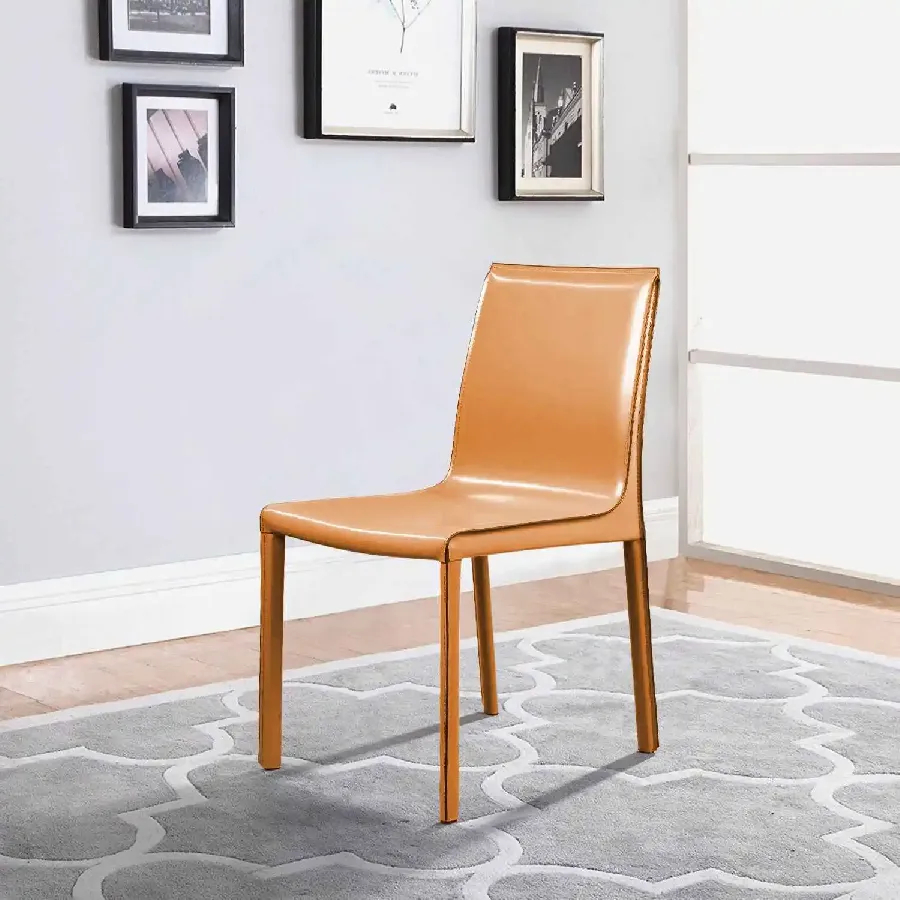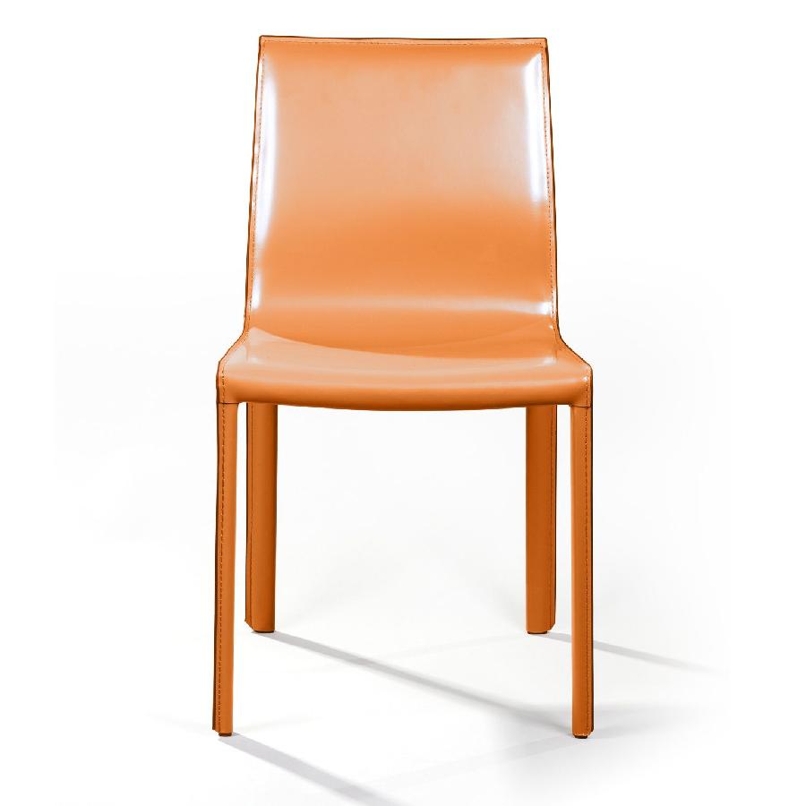 Крепкие металлические ножки скрыты под натуральной кожей такого же цвета, как и сам стул, благодаря этому создается лаконичный образ единого целого. На ножках предусмотрены специальные пластиковые накладки, которые придают стулу дополнительную устойчивость и защищают полот царапин.
