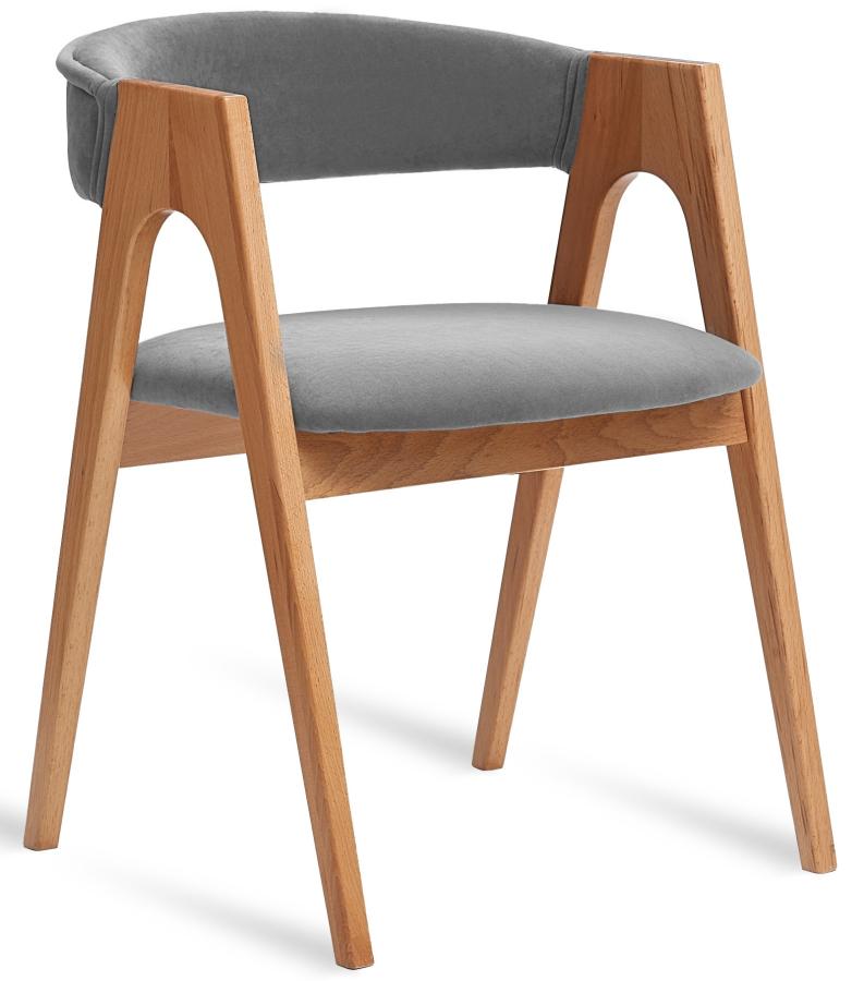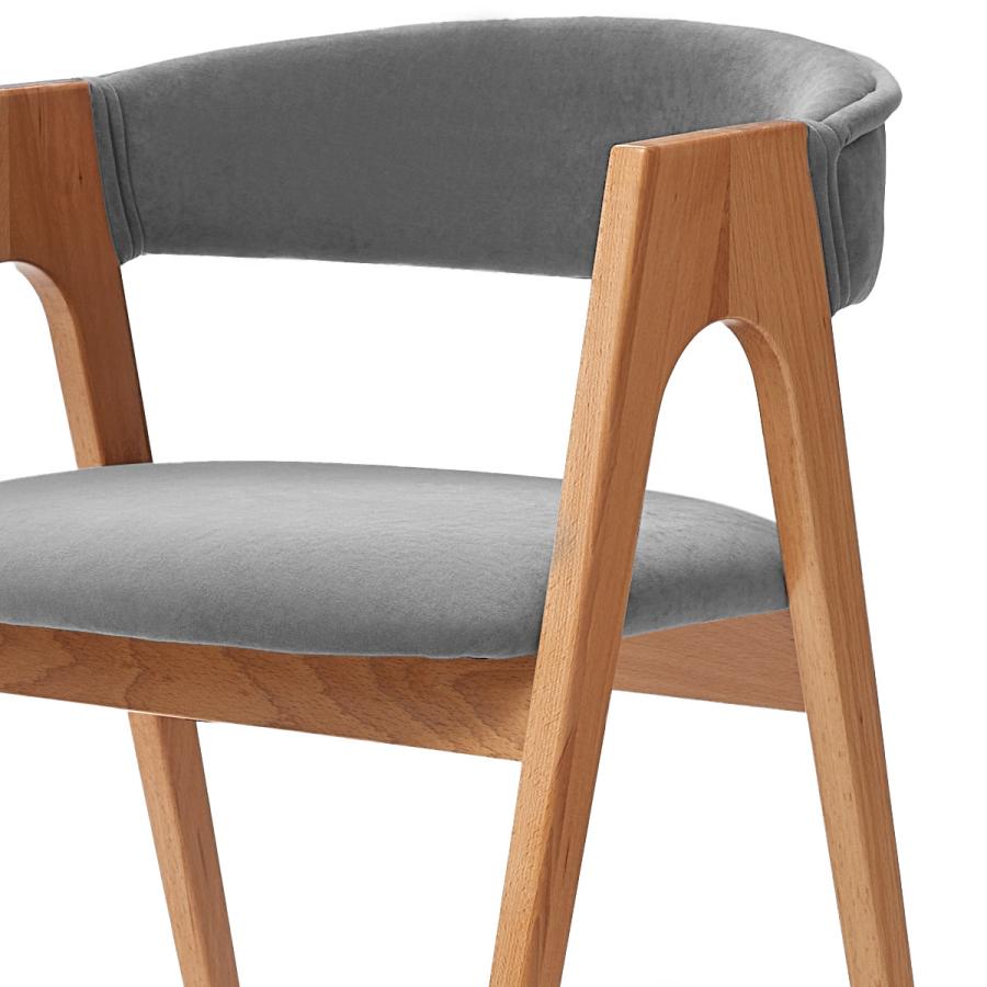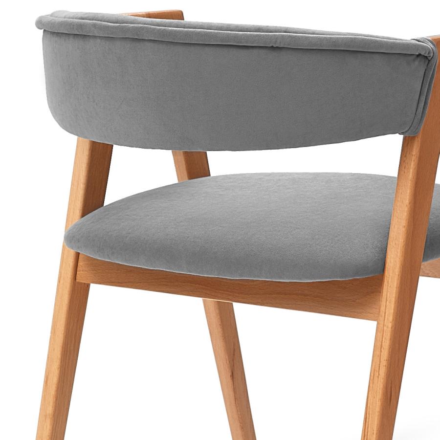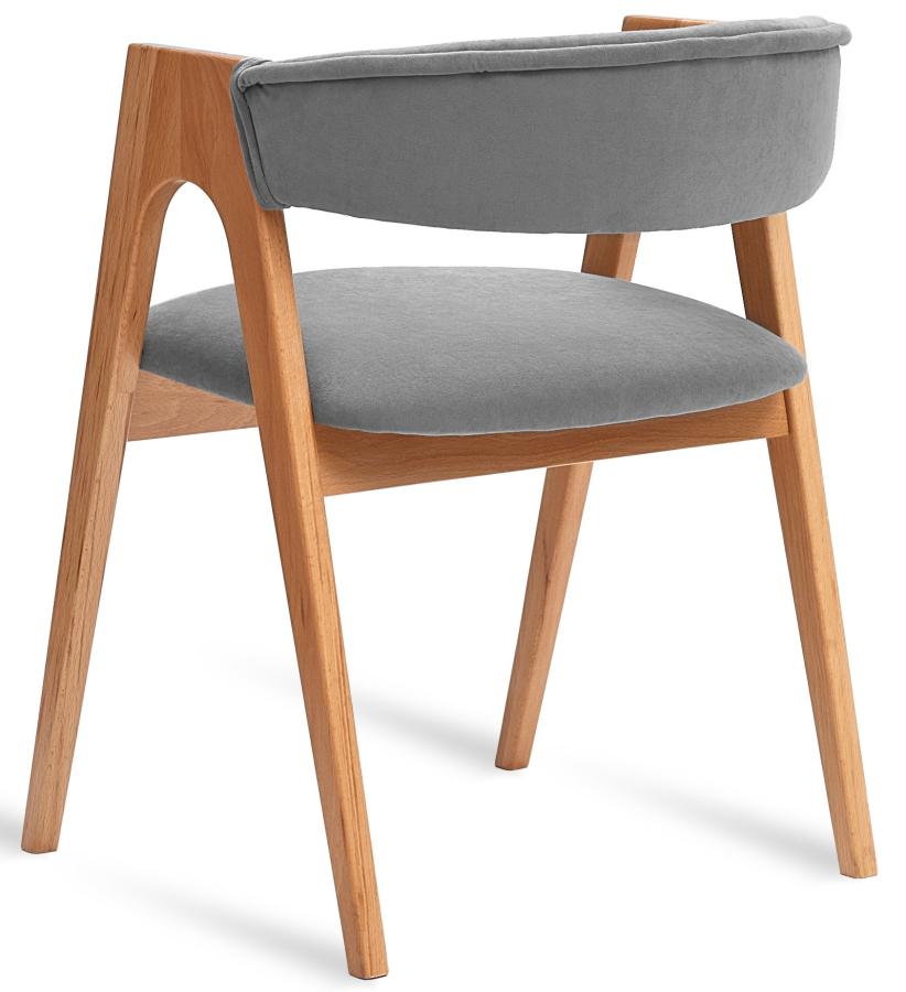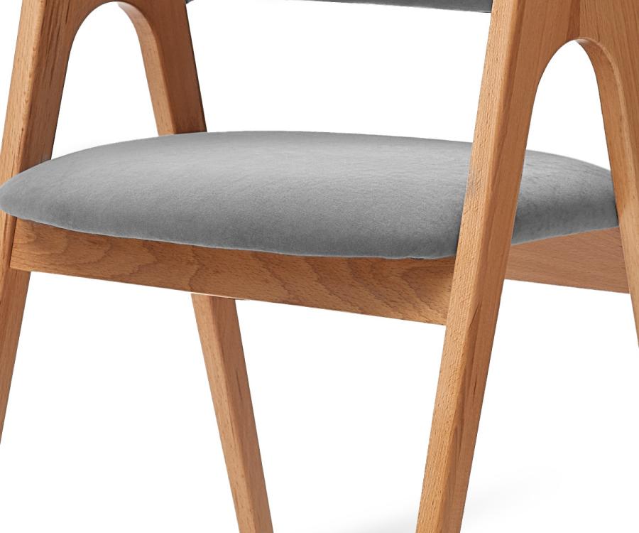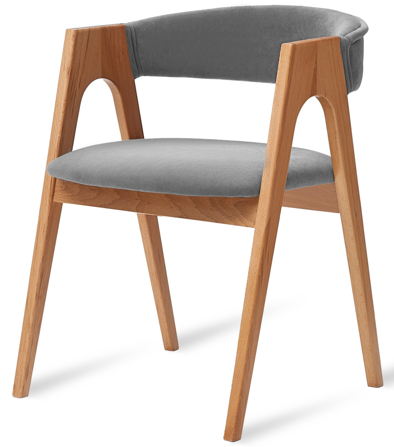 Дизайнерский стул с подлокотниками Кайто. Каркас выполнен из массива бука в натуральном цвете. Обивка велюр, цвет серый, светло-серый или латте.
