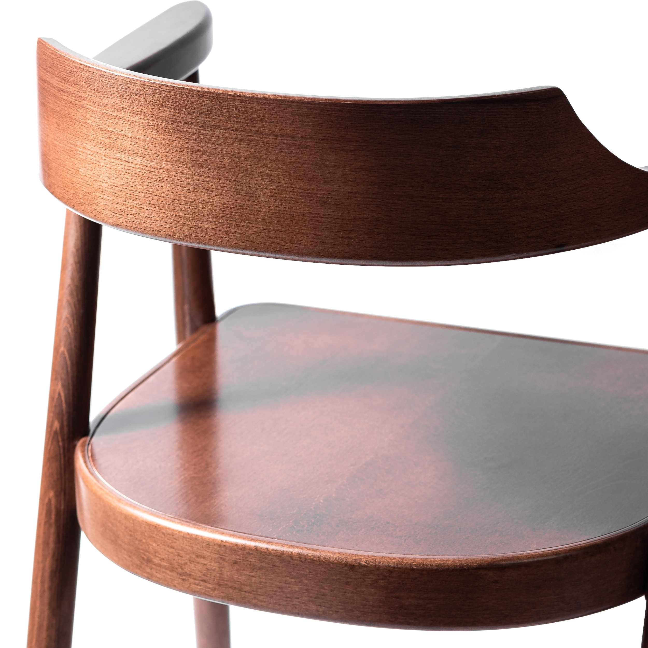 Стул с подлокотниками изготовлен из массива бука. Стильный стул впишется практически в любой интерьер, а качественное покрытие и прочный деревянный каркас обеспечивают долговечность.